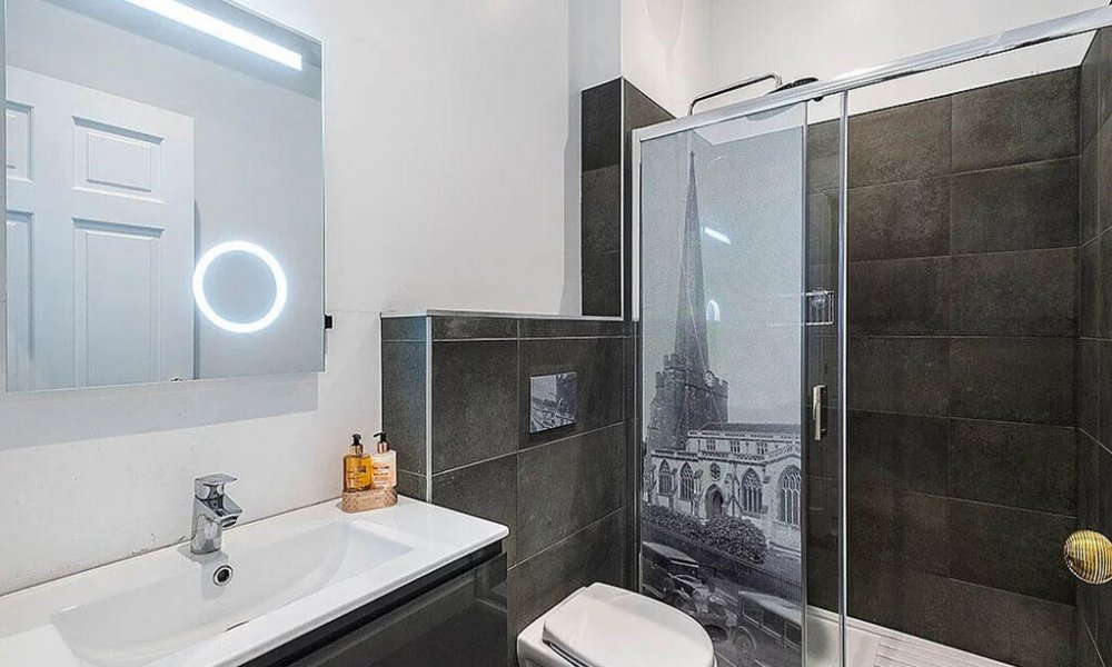The bathroom is in the hallway, convenient if you have guests, and fitted with a Dual Outlet Grohe shower to soak away the day’s stresses.