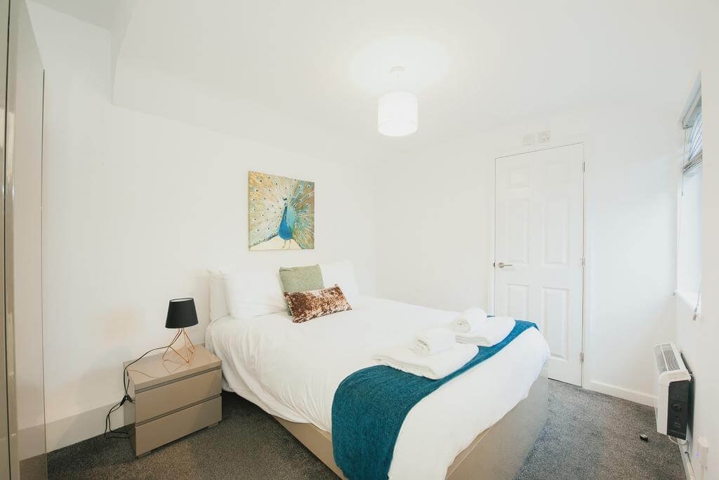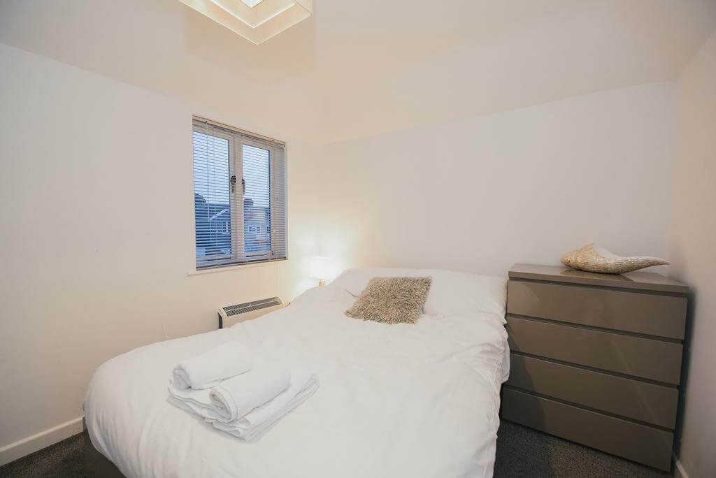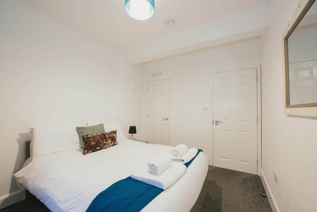 Each apartment features two bedrooms. Two 2 bedroom apartments have a single-family bathroom and can sleep up to 6, whereas a further 2 bedroom apartment has two ensuite double rooms. The apartments are beautifully designed to invoke the essence of a home away from home, with a clean and minimalistic aesthetic alongside all of the necessities required for an enjoyable and effortless stay. The living areas offer comfortable seating arrangements and a large flat-screen TV. The kitchens are well-maintained and are equipped with an oven, cooking hobs, and washing machine. There are plenty of drawers and cabinets throughout both properties for storing personal possessions and there is also a large wardrobe in each bedroom.