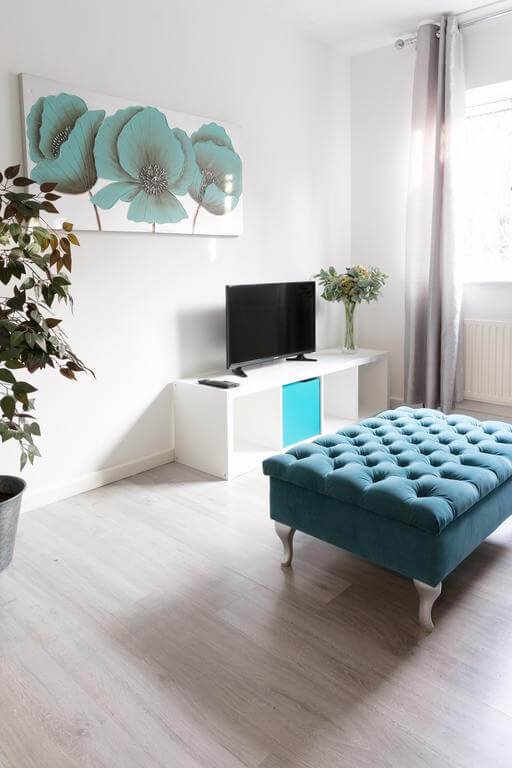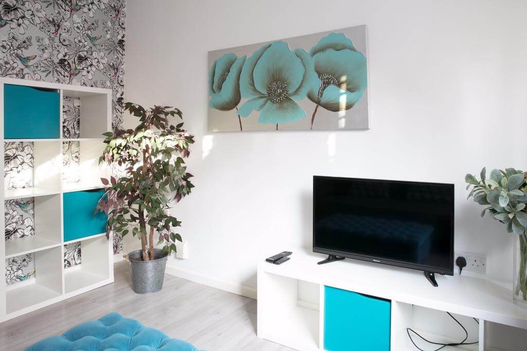 The Addenbrooke’s Suite is a modern and minimalistic one-bedroom apartment. The suite is fully furnished and can sleep up to 4 people. There is one bedroom with two single beds that can be merged together, and a pull-out sofa bed in the living area. There is one full-size bathroom including a shower unit and a separate toilet, fully stocked with essentials. The kitchen is equipped with a toaster, refrigerator, coffee machine and oven with hobs. The living area features a large flat screen TV complemented by modern, clean and comfortable furniture. The apartment is located on the ground floor – however there is unfortunately no disabled access.