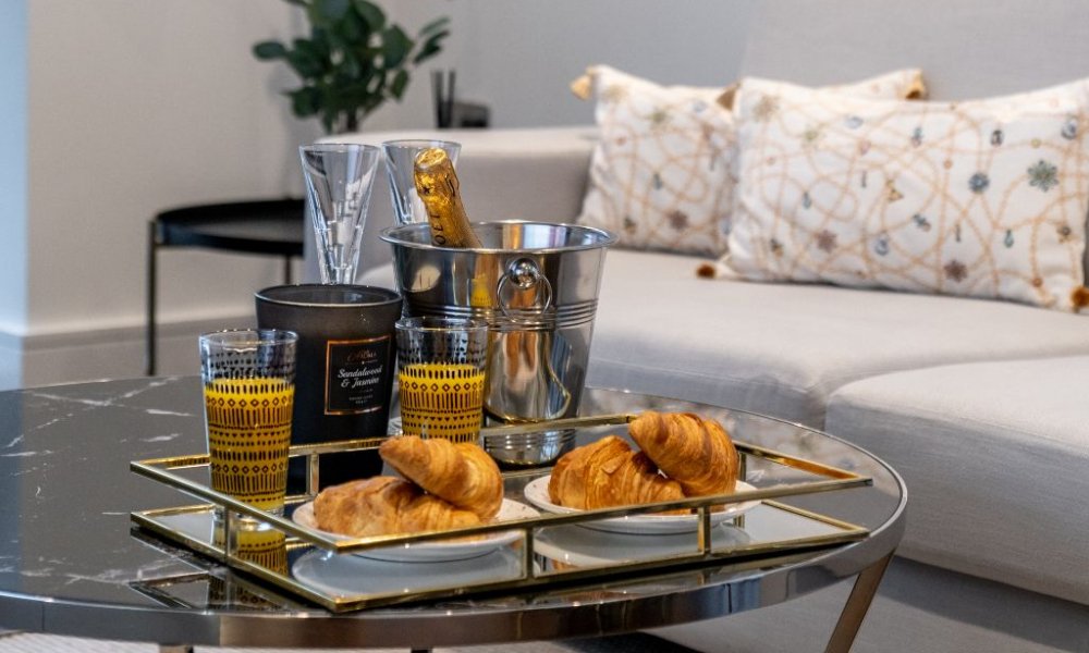 A pristine brand new luxury apartment that has just been launched recently. Enjoy the high end furniture and Netflix entertainment on the 60″ Smart TV or venture out to the balcony for a drink and chill. Fancy a nice hot bath instead? Then do it in style and whilst catching up on some news or your favourite TV series on the built-in TV in the underfloor heated bathroom! Cook up a storm in our fully equipped kitchen with fully integrated Smeg appliances. All crockery, silverware and dining sets available for up to four guests. Get your most restful sleep in our opulently decorated bedrooms with high quality memory foam beds and individually climate controlled air conditioned rooms.