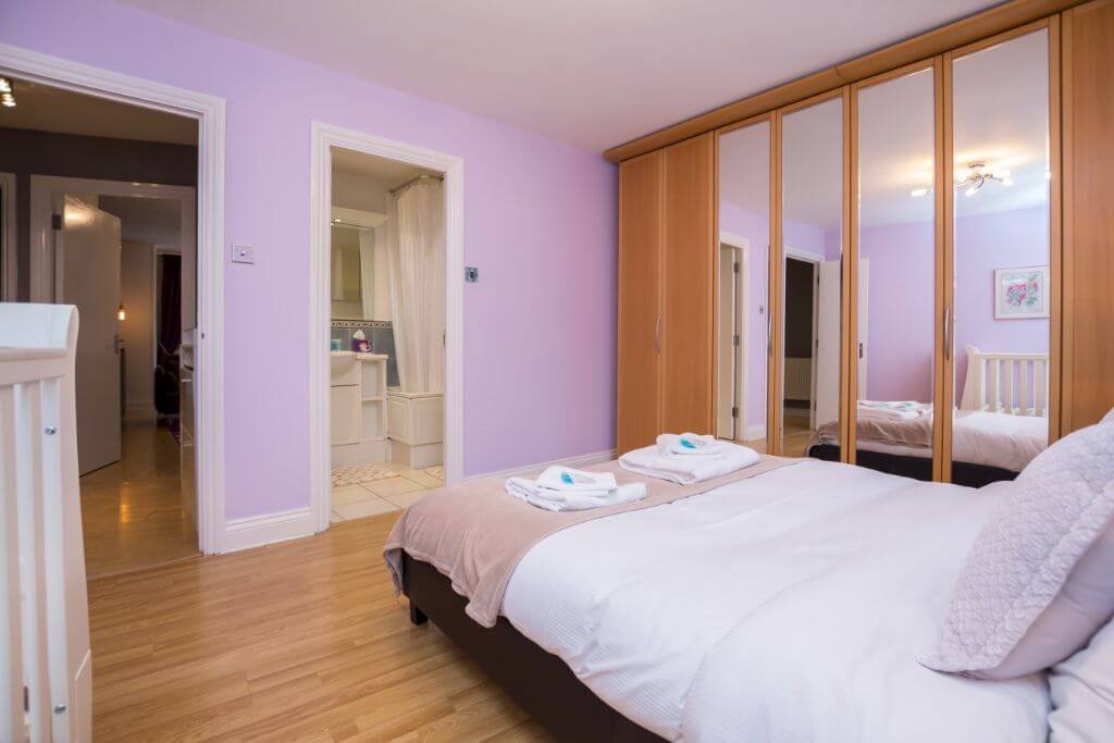 – The two en-suite bedrooms are spacious and light with storage space and fresh hotel-quality linen on double beds. There is a baby cot.
