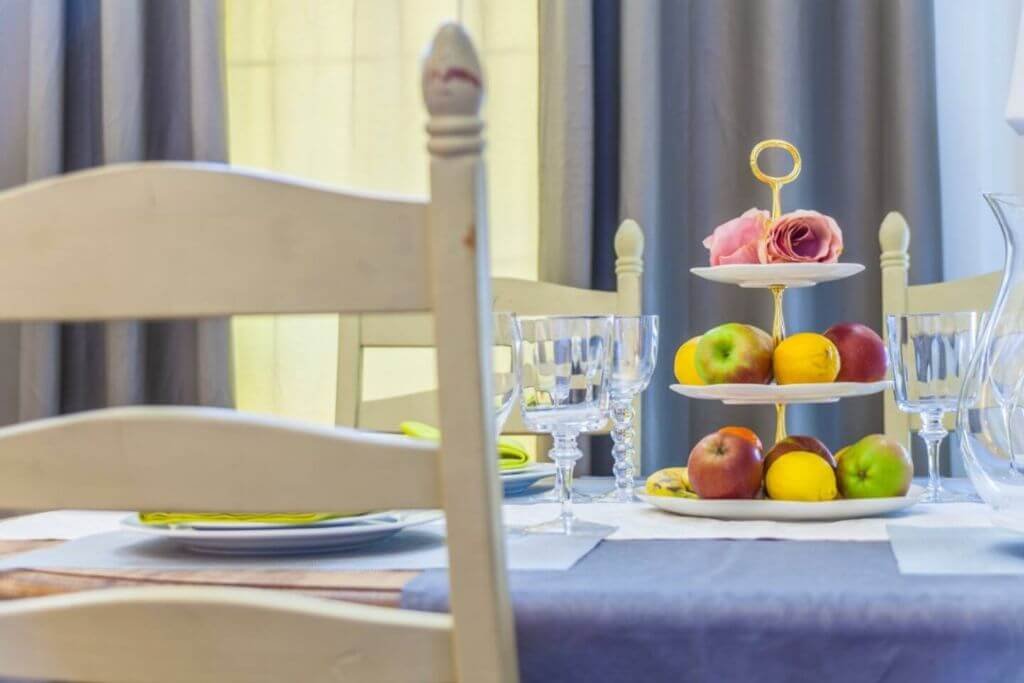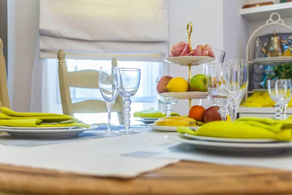 – There is a beautiful dining space with seats for 4 guests. The separate modern kitchen includes all cooking utensils, pots and pans are supplied.