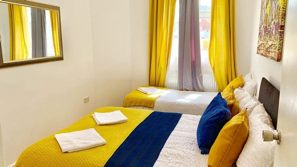 – There are four bedrooms, one single (study room mentioned above) on the first floor, master en-suite bedroom and double bedroom on the third floor, one more en-suite bedroom on the fourth floor. All boast storage space, the beds are set with fresh crispy hotel-quality linen.