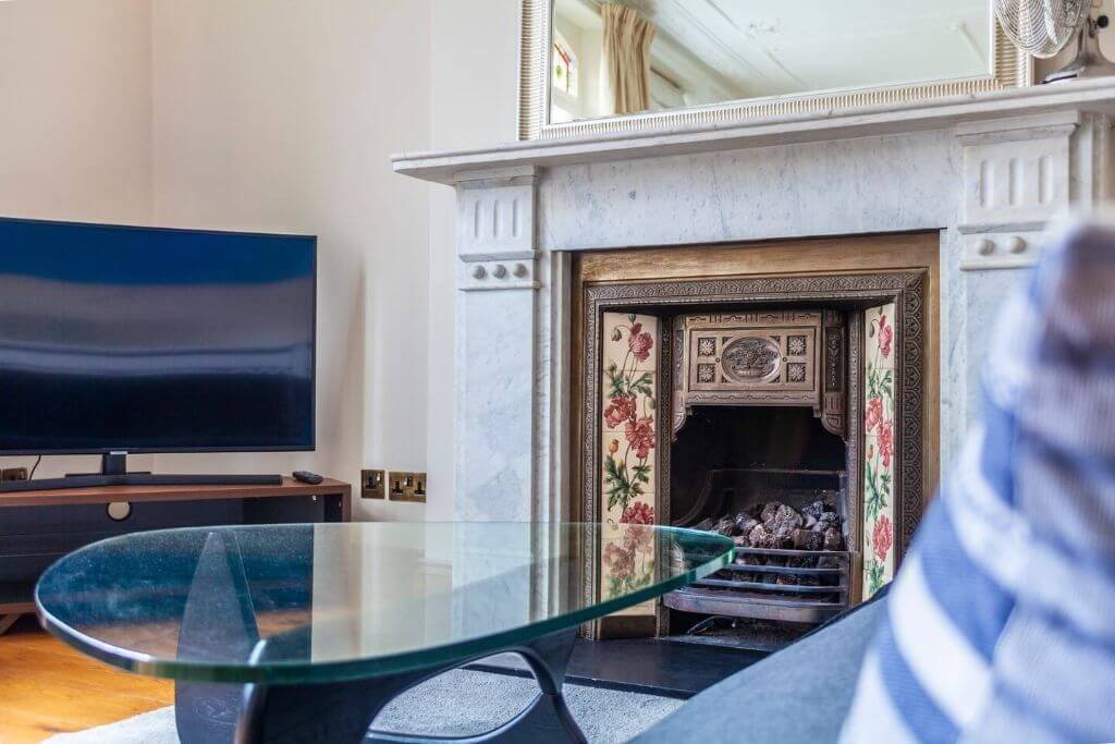 – There is a large desk and comfortable chair in the lounge, perfect for those who work remotely.