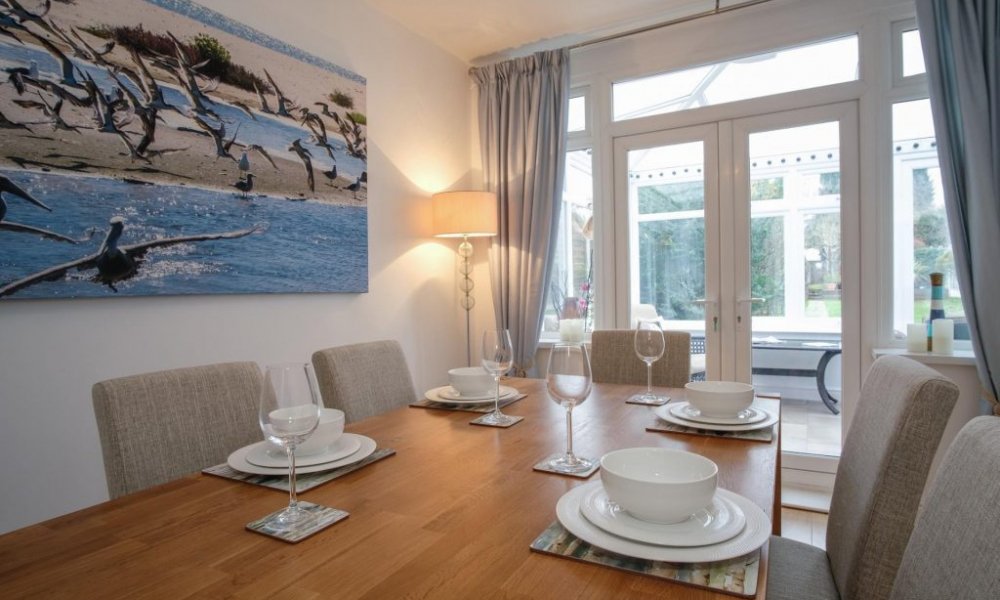Entering through a wooden floored hallway you will have access to a modern and clean kitchen, dining room, lounge, conservatory and utility. The kitchen is well equipped and provides double oven, hob, fridge, microwave and dish washer. A washing machine and large freezer are also available within the utility The lounge is perfect for relaxing in , with a comfortable sofa, arm chair, oak side tables and Flat screen Tv. The dining room has a large table and looks out to the conservator y which is the full width of the house and overlooks the well-kept large garden, patio and decking areas.