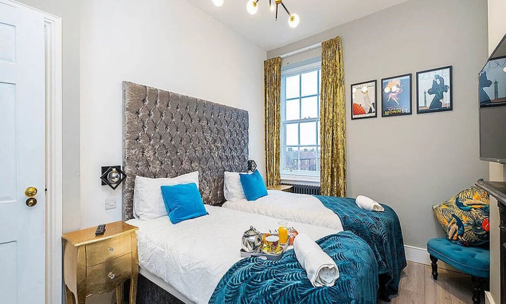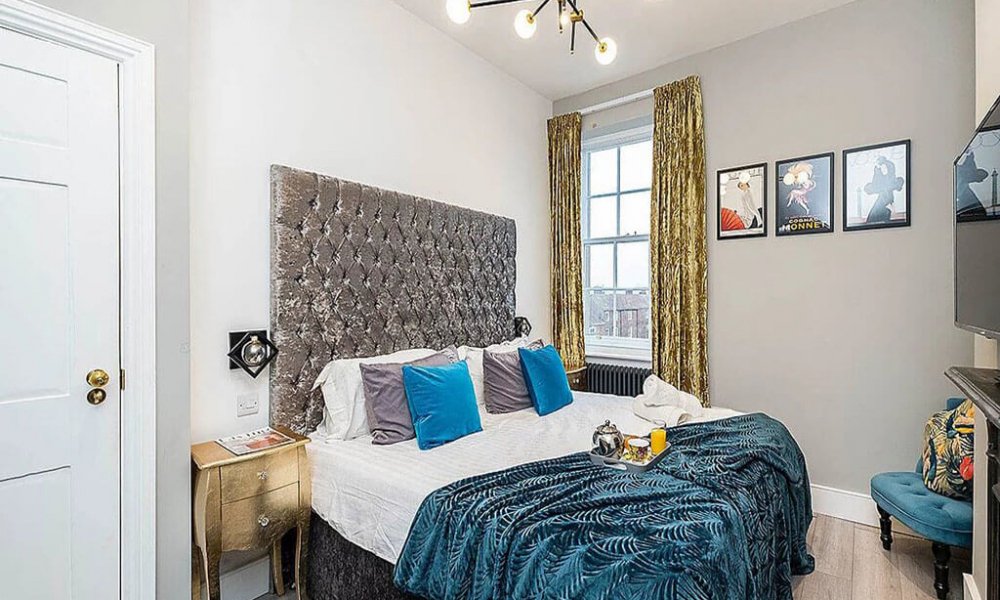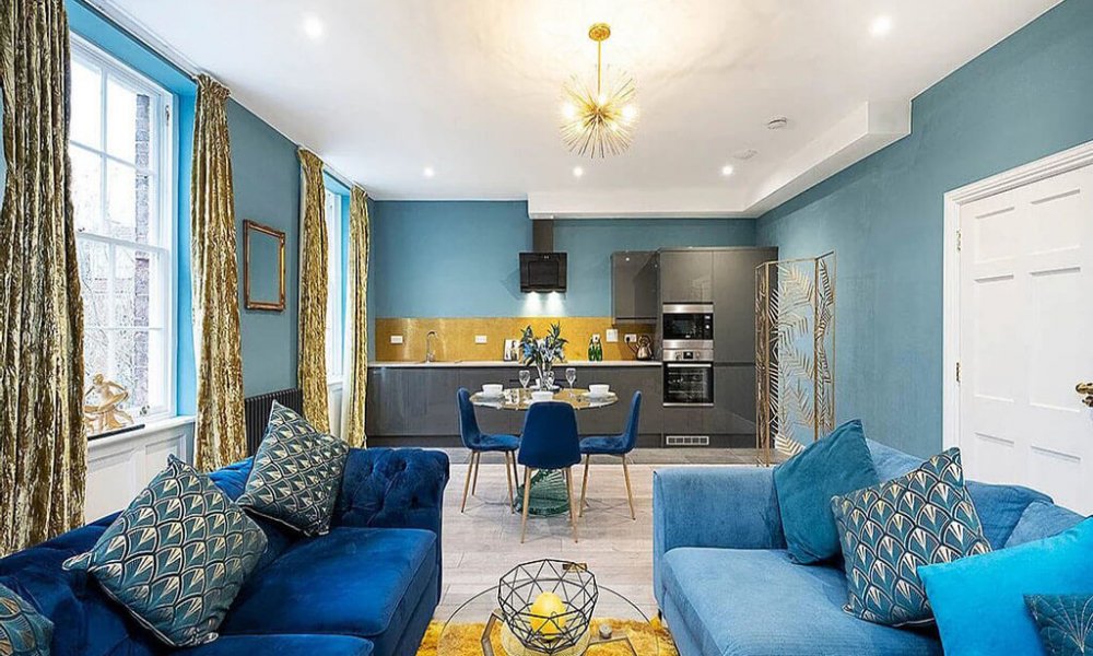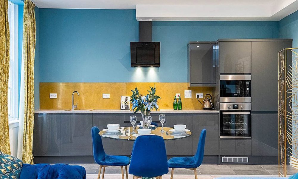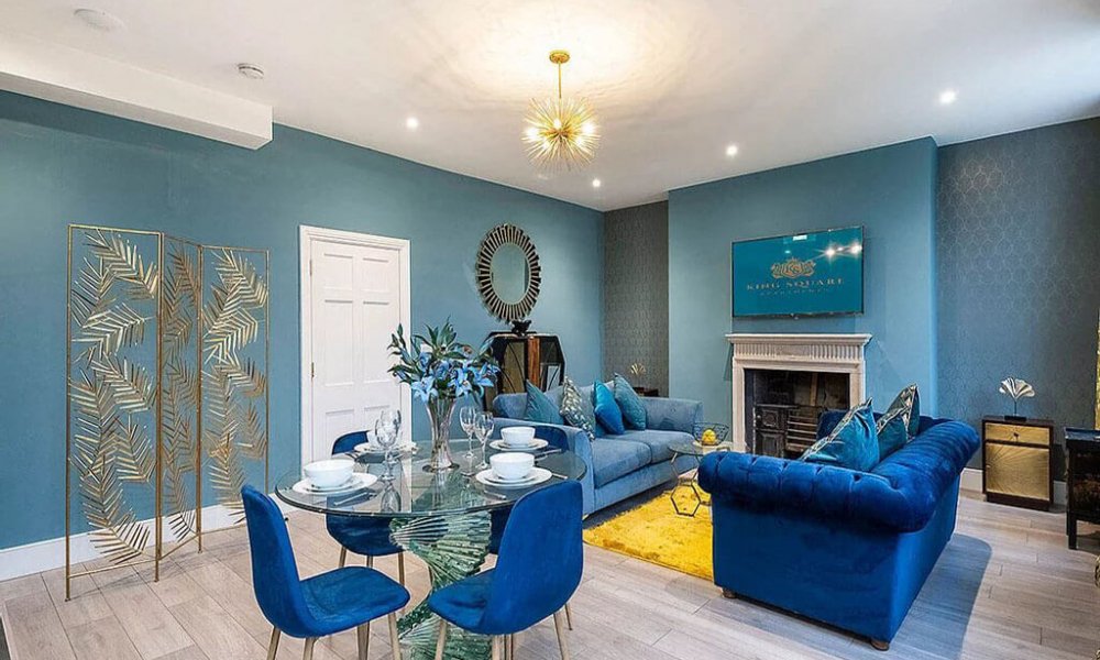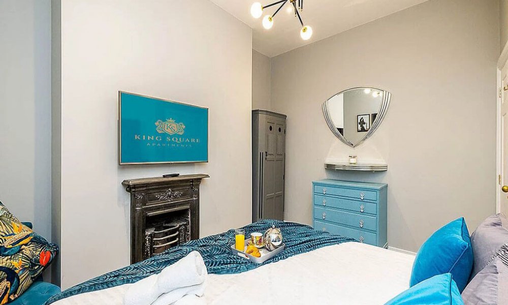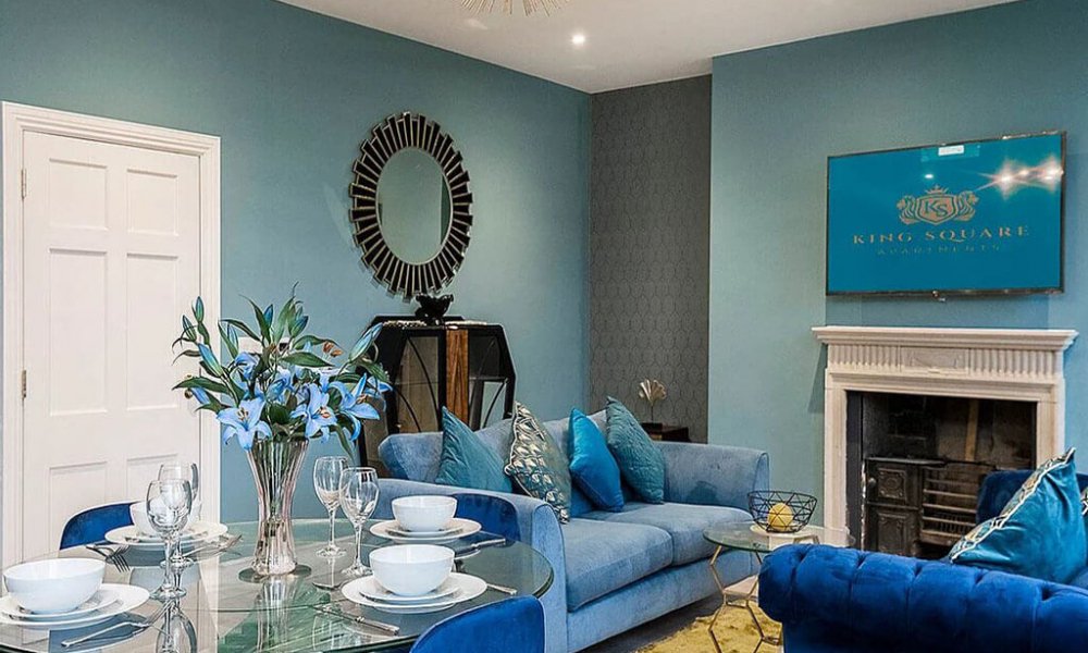 Dark, moody with a hint of gold and shimmer this apartment offers high ceilings and an art deco theme. Enjoy beautiful views of the historical King Square from this second floor suite with a separate living area with a fully equipped kitchen and dining area. Melt into the luxurious sofas while you decide what to watch on the SmartTV, which also includes Netflix. The two sofas conveniently transform into sofa beds, for extra guests in the lounge.