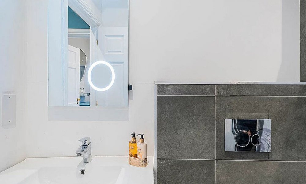 The bathroom is in the hallway, convenient if you have guests, and fitted with a Dual Outlet Grohe shower to soak away the day’s stresses.