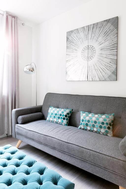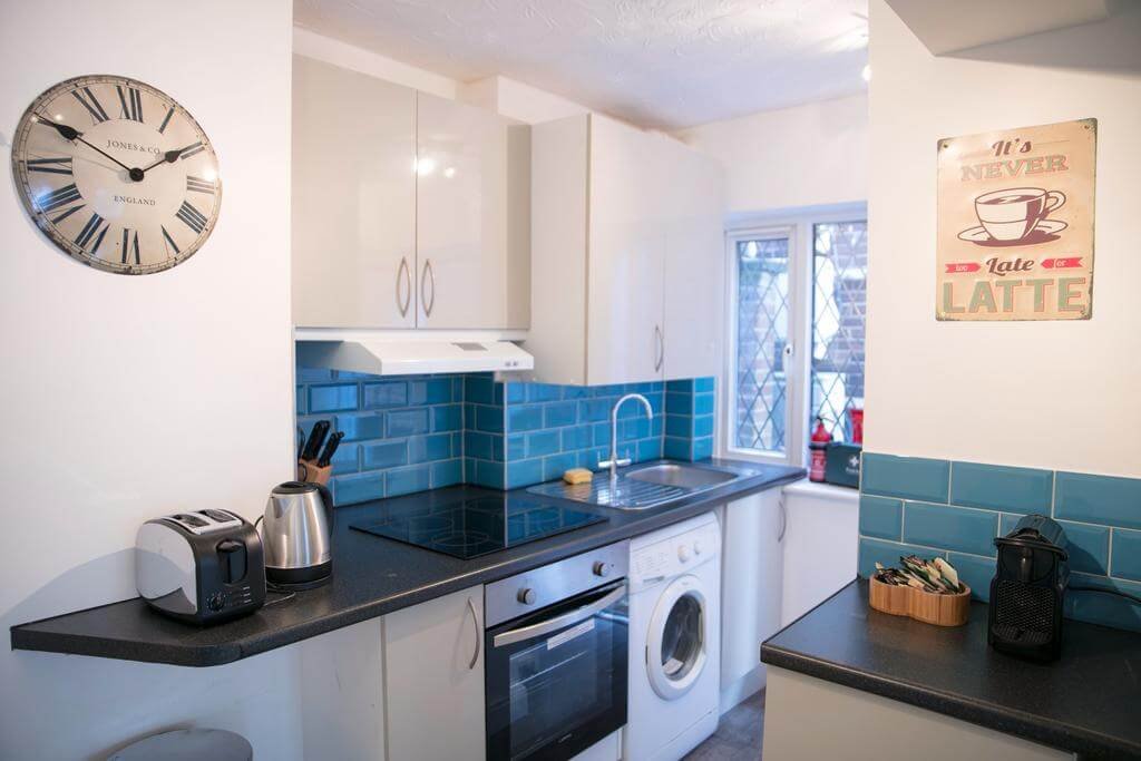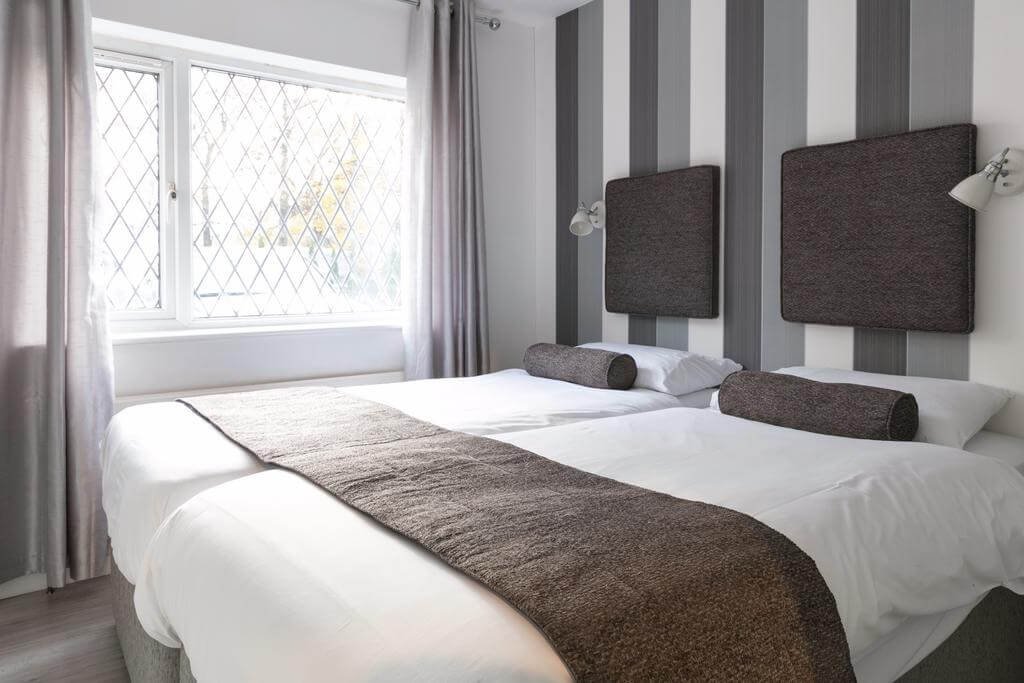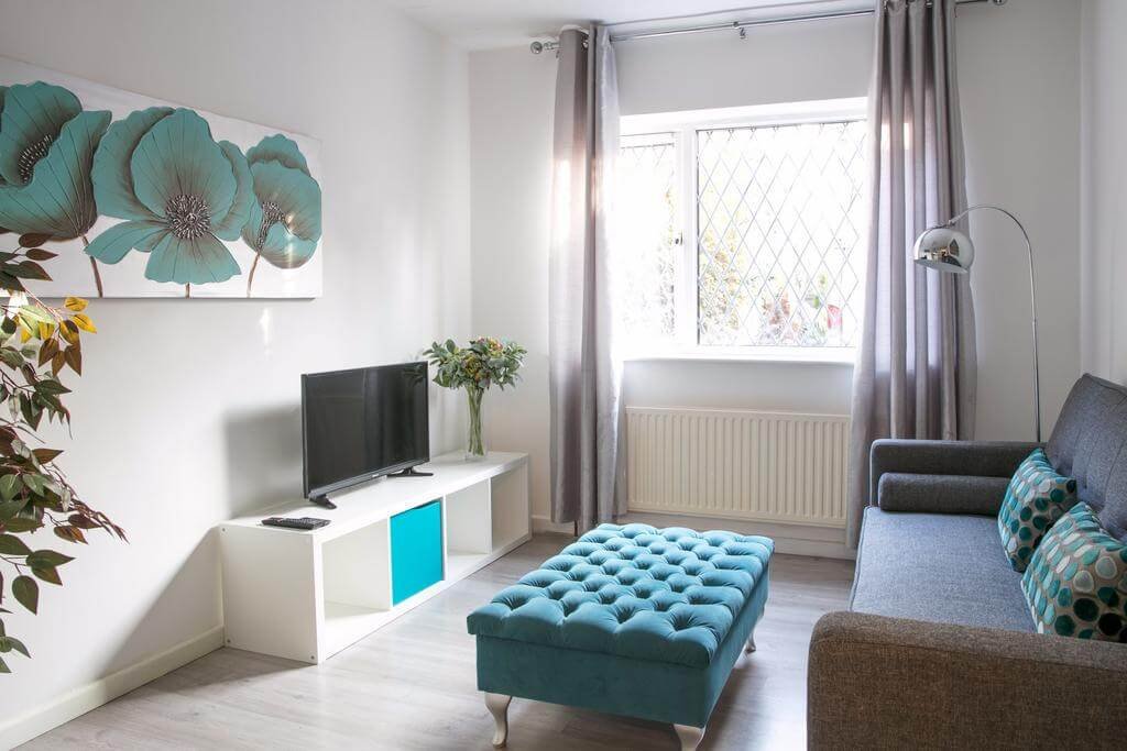 The Addenbrooke’s Suite is a modern and minimalistic one-bedroom apartment. The suite is fully furnished and can sleep up to 4 people. There is one bedroom with two single beds that can be merged together, and a pull-out sofa bed in the living area. There is one full-size bathroom including a shower unit and a separate toilet, fully stocked with essentials. The kitchen is equipped with a toaster, refrigerator, coffee machine and oven with hobs. The living area features a large flat screen TV complemented by modern, clean and comfortable furniture. The apartment is located on the ground floor – however there is unfortunately no disabled access.