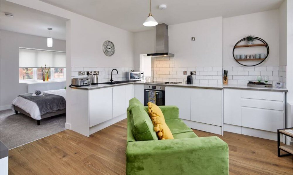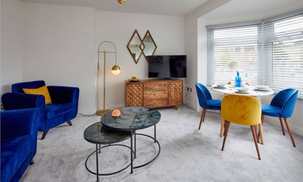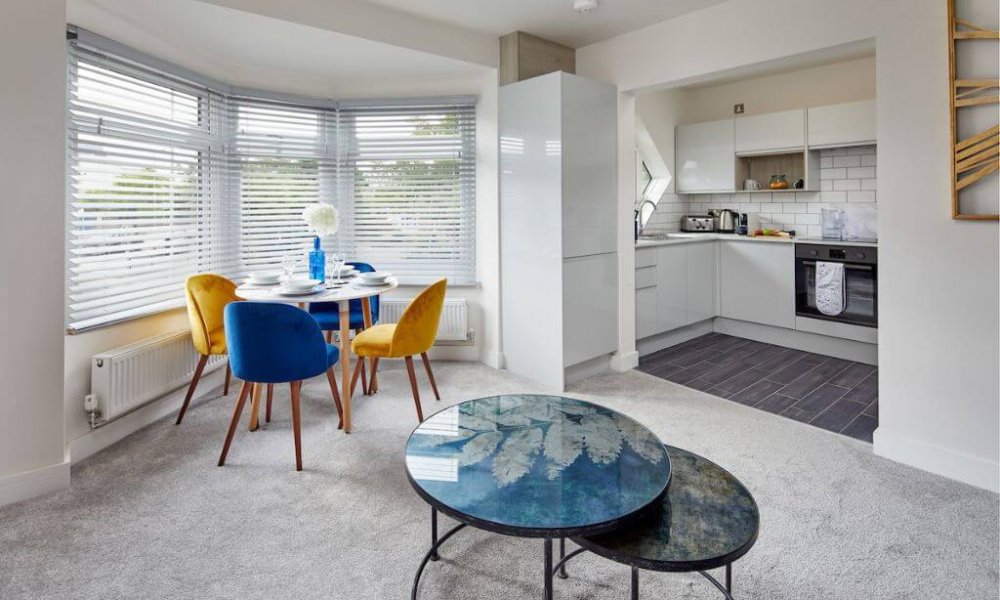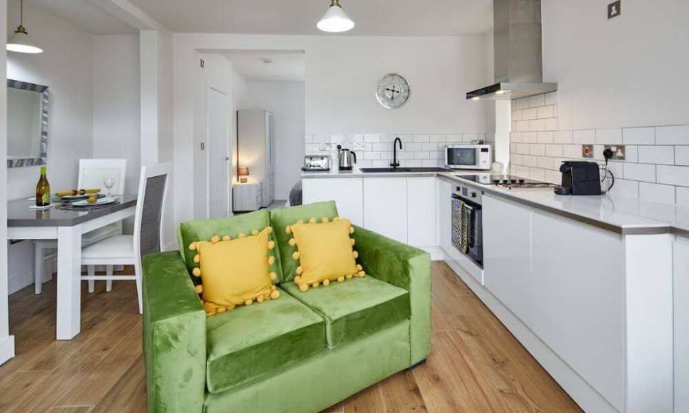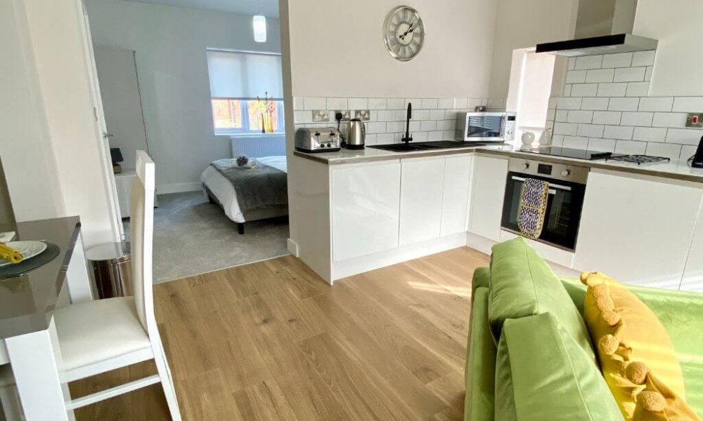 A mixed of one and two bedroom apartments totally self contained with its own entrance and own patio space. Large fully fitted modern kitchen with electric oven&hob, fridge/freezer/ dishwasher, coffee machine, microwave and washing machine. Dining table to seat 4 persons The lounge has a large sofa and comfy arm chair, coffee table, 42″ smart TV . High speed broadband. Master bedroom has a super-king bed or 2 x 3ft singles with semi orthopaedic mattress for a comfortable nights sleep, separate dressing or office area.