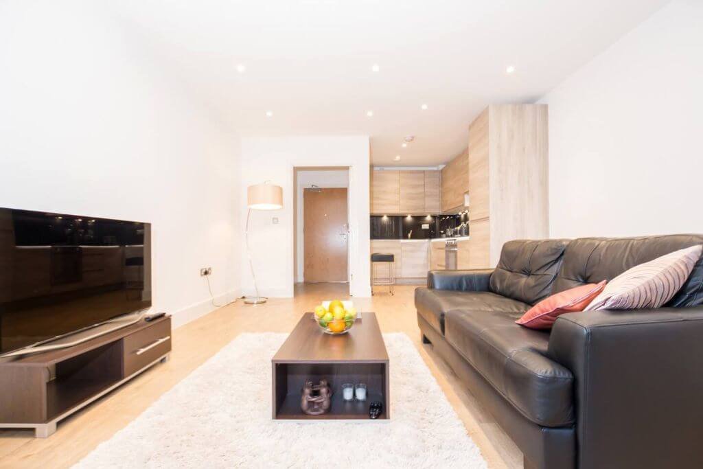 Although it is an extremely easy commute to Central London, my home is the perfect haven from the bustling city. You have the best of both worlds – you can either explore this exciting part of London just a short subway ride away, or get some peace and quiet in my cosy apartment. The living space is clean and classic. Go for a walk in the park or kick back on the comfortable sofa and relax in front of the TV after a long day – it has a very welcoming atmosphere. The apartment is newly built so everything in the kitchen is classic but contemporary, making it an enjoyable place to cook. The light double bedroom with french windows floor to ceiling is comfortable and perfect for a good night’s sleep. The king-size bed will have fresh luxury linen. The bedroom also has a wardrobe so you have plenty of storage space – it’s so nice to unpack and feel at home when you arrive. There is also a separate storage room where you can store your luggage to get it out of the way for the length of your stay. Freshen up in the lovely bathroom – the shower is new and you can enjoy the fluffy towels and shampoo that are provided! My apartment will be professionally cleaned before your stay. I really hope you’ll enjoy your stay at my home.