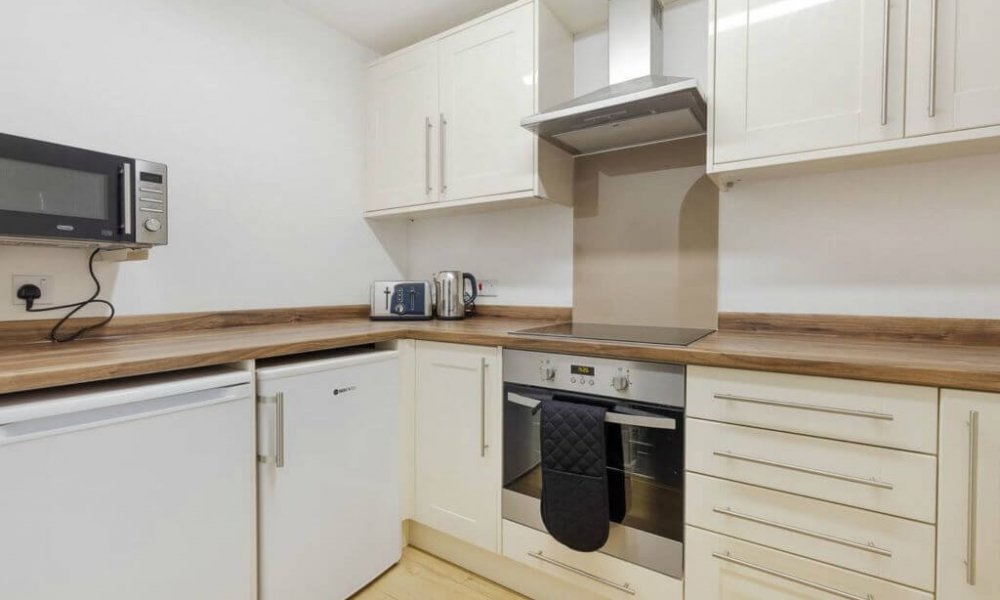 Each unit is fully fitted with a washing machine, a flat-screen TV, a sofa, and desk. A microwave, a fridge, and oven are also available in the kitchen, as well as a kettle.